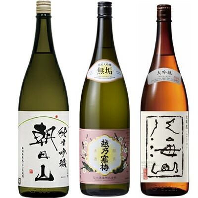 朝日山 純米酒 1800mlと越乃寒梅 無垢 純米大吟醸 1800ml と 八海山 大吟醸 1800ml 日本酒 3本セット