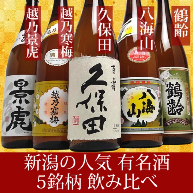 新潟 人気 有名酒 飲み比べ 1800ml 5本(第48弾) 久保田 越乃寒梅 八海山 越乃景虎 鶴齢 日本酒 飲み比べセット 日...