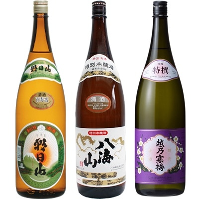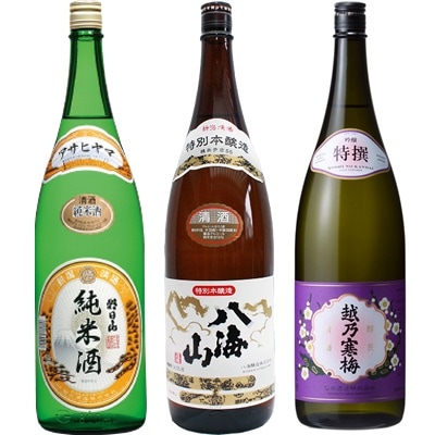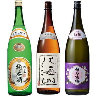 朝日山 純米酒 1800mlと八海山 大吟醸 1800ml と 越乃寒梅 特撰 吟醸 1800ml 日本酒 3本セット