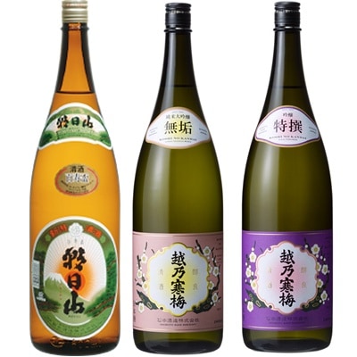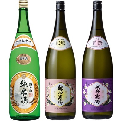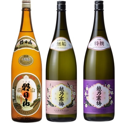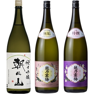 朝日山 純米酒 1.8Lと越乃寒梅 無垢 純米大吟醸 1.8L と 越乃寒梅 特撰 吟醸 1.8L