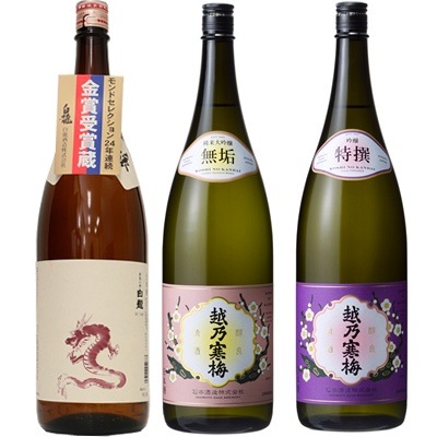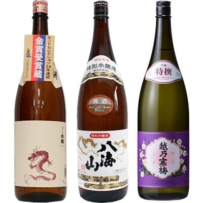 白龍 龍ラベル からくち1800mlと八海山 大吟醸 1800ml と 越乃寒梅 特撰 吟醸 1800ml 日本酒 3本セット