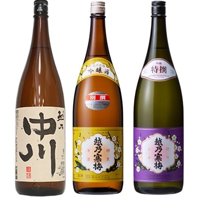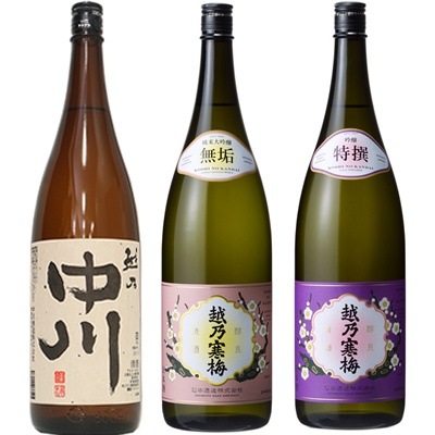 越乃中川 1.8Lと八海山 特別本醸造 1.8L と 越乃寒梅 特撰 吟醸 1.8L