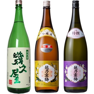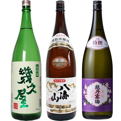 五代目 幾久屋 1.8Lと八海山 特別本醸造 1.8L と 越乃寒梅 特撰 吟醸 1.8L