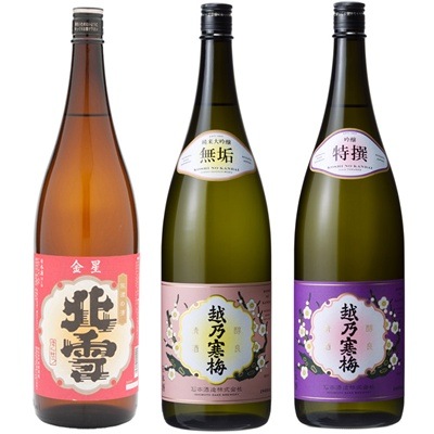 北雪 金星 無糖酒 1800mlと八海山 大吟醸 1800ml と 越乃寒梅 特撰 吟醸 1800ml 日本酒 3本セット