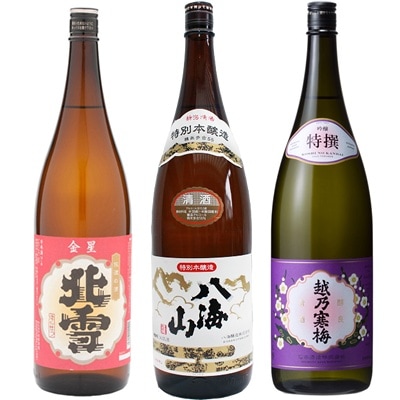 北雪 金星 無糖酒 1.8Lと八海山 特別本醸造 1.8L と 越乃寒梅 特撰 吟醸 1.8L