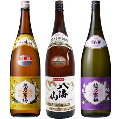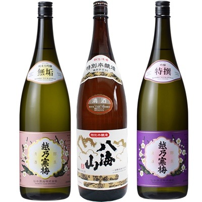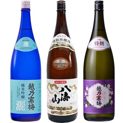 妙高 旨口四段仕込 本醸造 1.8Lと八海山 特別本醸造 1.8L と 越乃寒梅 特撰 吟醸 1.8L