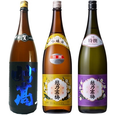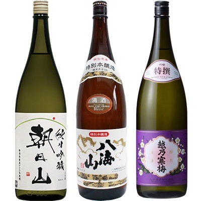 朝日山 純米吟醸 1800mlと八海山 大吟醸 1800ml と 越乃寒梅 特撰 吟醸 1800ml 日本酒 3本セット