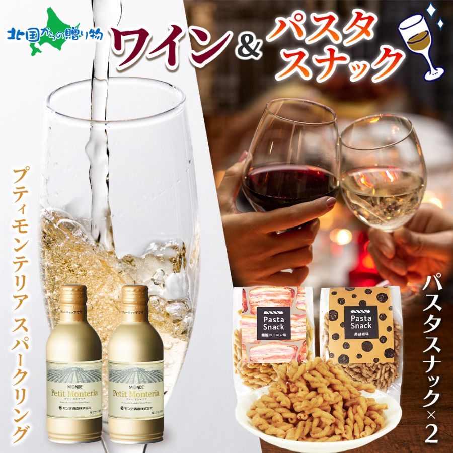 モンデ酒造 プティモンテリア スパークリング2種&パスタスナック 2種 (ベーコン/黒コショウ) お歳暮 ワイン おつまみ セット...