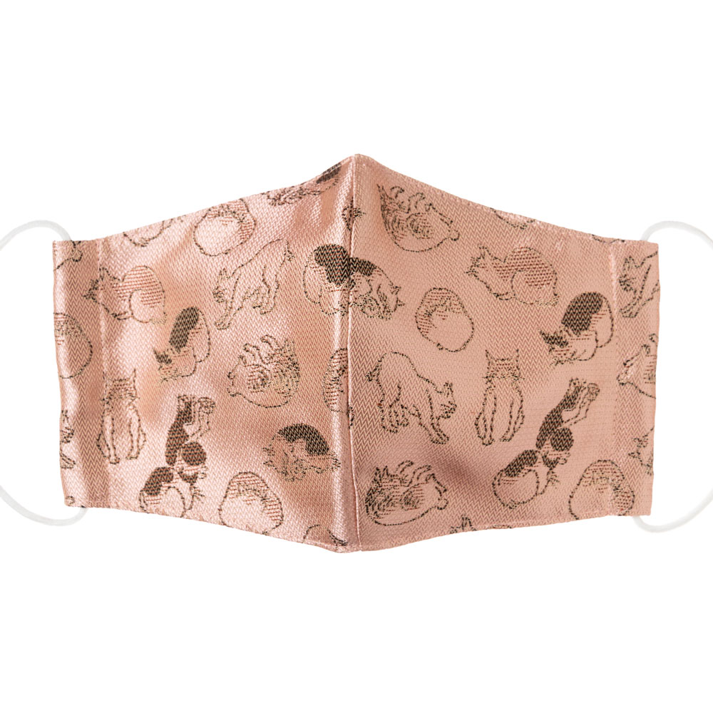京都 あらいそ 西陣織名物裂 和装マスク006 ねこ尽くし文様 桃 正絹織物とガーゼを組み合わせた和風スタイルマスク 男女兼用 K...