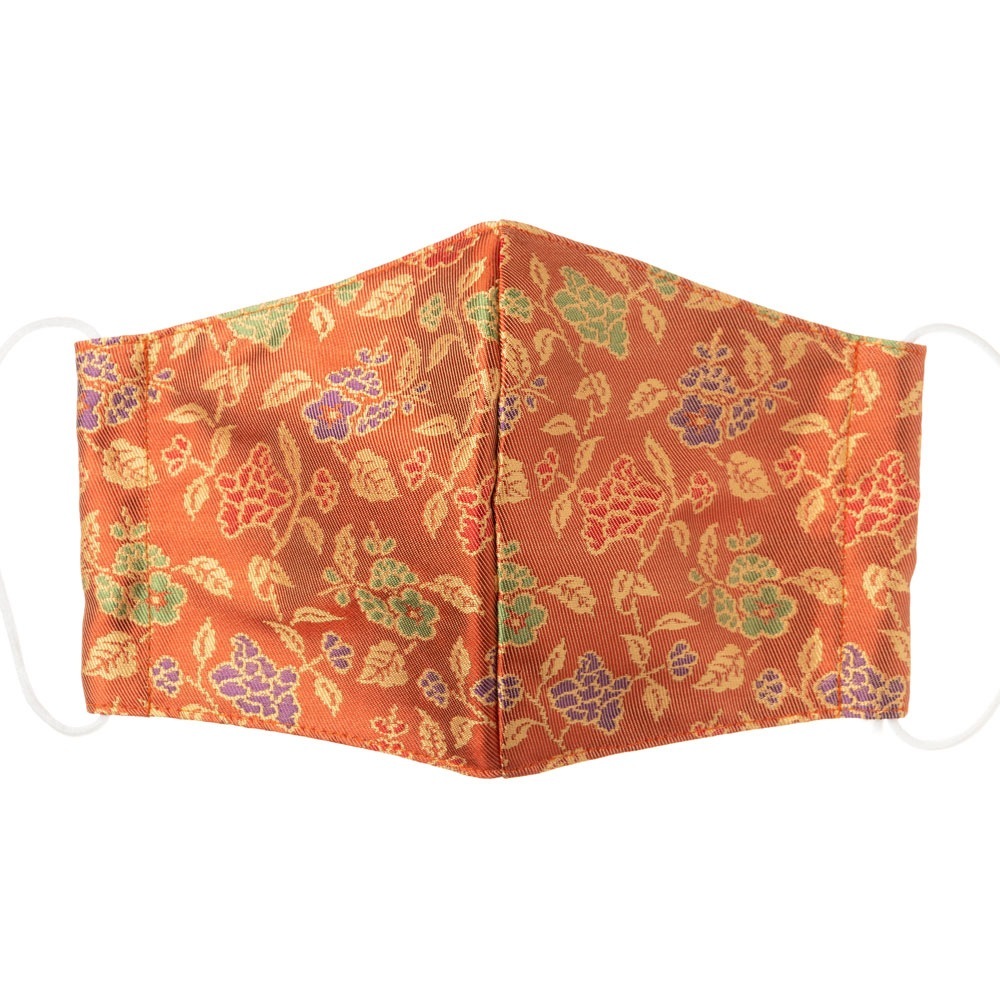 京都 あらいそ 西陣織名物裂 和装マスク009 五芒星七宝文様 橙 正絹織物とガーゼを組み合わせた和風スタイルマスク 男女兼用 K...