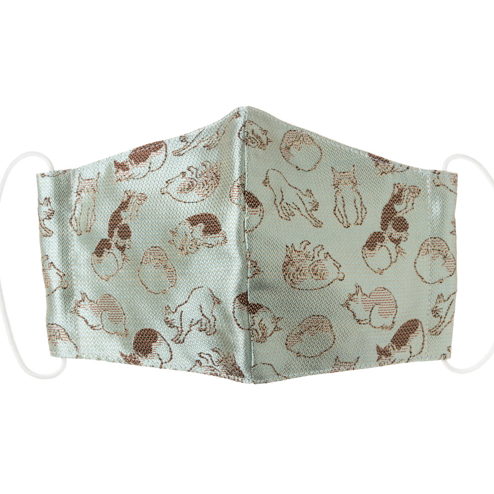 京都 あらいそ 西陣織名物裂 和装マスク007 ねこ尽くし文様 青 正絹織物とガーゼを組み合わせた和風スタイルマスク 男女兼用 K...