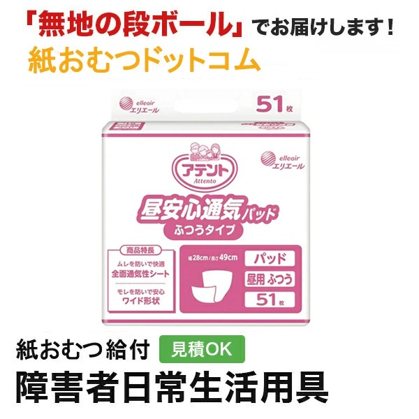 アテント 昼安心通気パッド ふつうタイプ 病院・施設用 51枚入 大人用紙おむつ 尿取りパッド