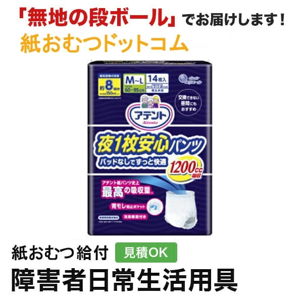 アテント 夜1枚安心パンツ パッドなしでずっと快適 男女共用 M-Lサイズ 14枚 大人用 紙おむつ パンツタイプ