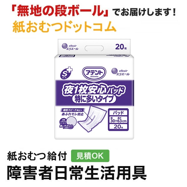 アテント Sケア夜1枚安心パッド 特に多いタイプ 20枚入 大人用紙おむつ 尿取りパッド