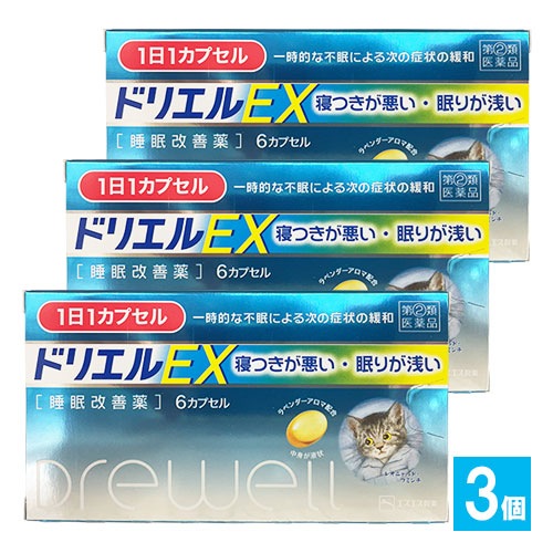 【指定第2類医薬品】ドリエルEX 6カプセル×3個セット【エスエス製薬】睡眠改善薬 寝つきが悪い 眠りが浅い