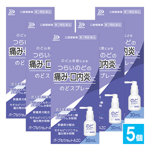 【第3類医薬品】パープルショットAZC のどスプレー 30mL×5個セット【白金製薬】【訳あり特別価格】のどの炎症によるつらいのど...