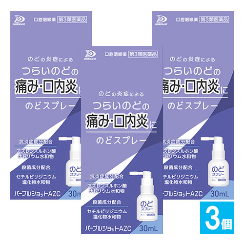 【第3類医薬品】パープルショットAZC のどスプレー 30mL×3個セット【白金製薬】【訳あり特別価格】のどの炎症によるつらいのど...