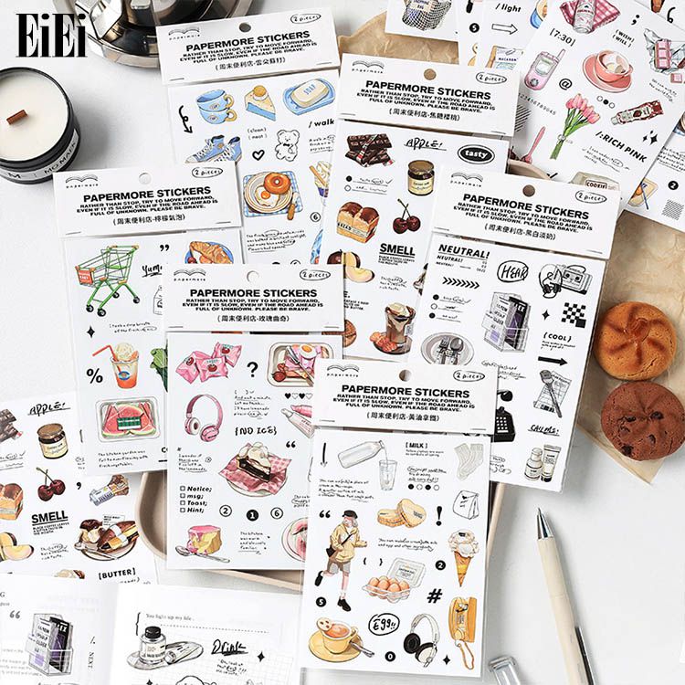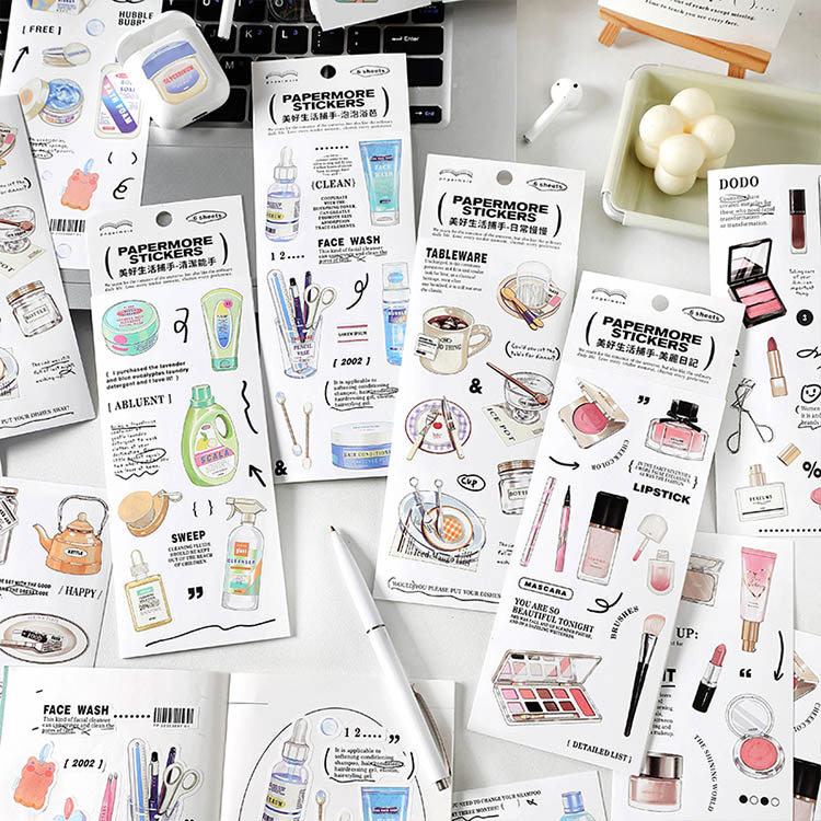 即日出荷 カット済 シールシート 6枚入 型抜き コラージュ 素材 海外ステッカー 珍しい 食器類 化粧道具 化粧小物 ブラシ 珈...