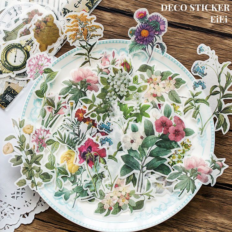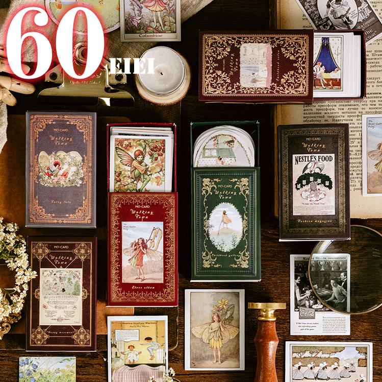 海外ステッカー 60枚 フレークシール 箱入り 手帳デコ ラベル ビンテージ アンティーク コラージュ素材 レトロ 西洋 絵本 童...