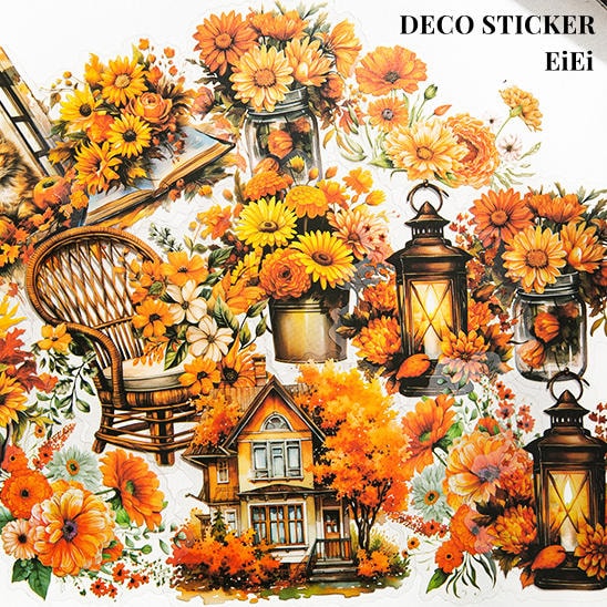即日出荷 クリアシール コラージュ素材 シール 大きめ PET 耐水 海外 シール 小屋 冬 雪 花柄 柵 ドア 扉 窓 窓側 生...