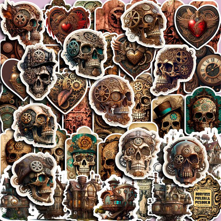 即納 スチームパンク 髑髏 ドクロ キャラクター ステッカー 50枚 コラージュシール コラージュ 素材 セット スチームパンク ...