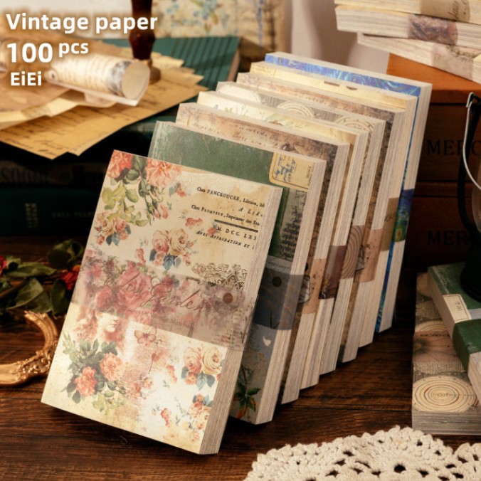 即日出荷 大容量 ヴィンテージ ペーパー 100枚50柄 14~21番 素材紙 ブック 背景紙 デザインペーパー 海外 コラージュ...
