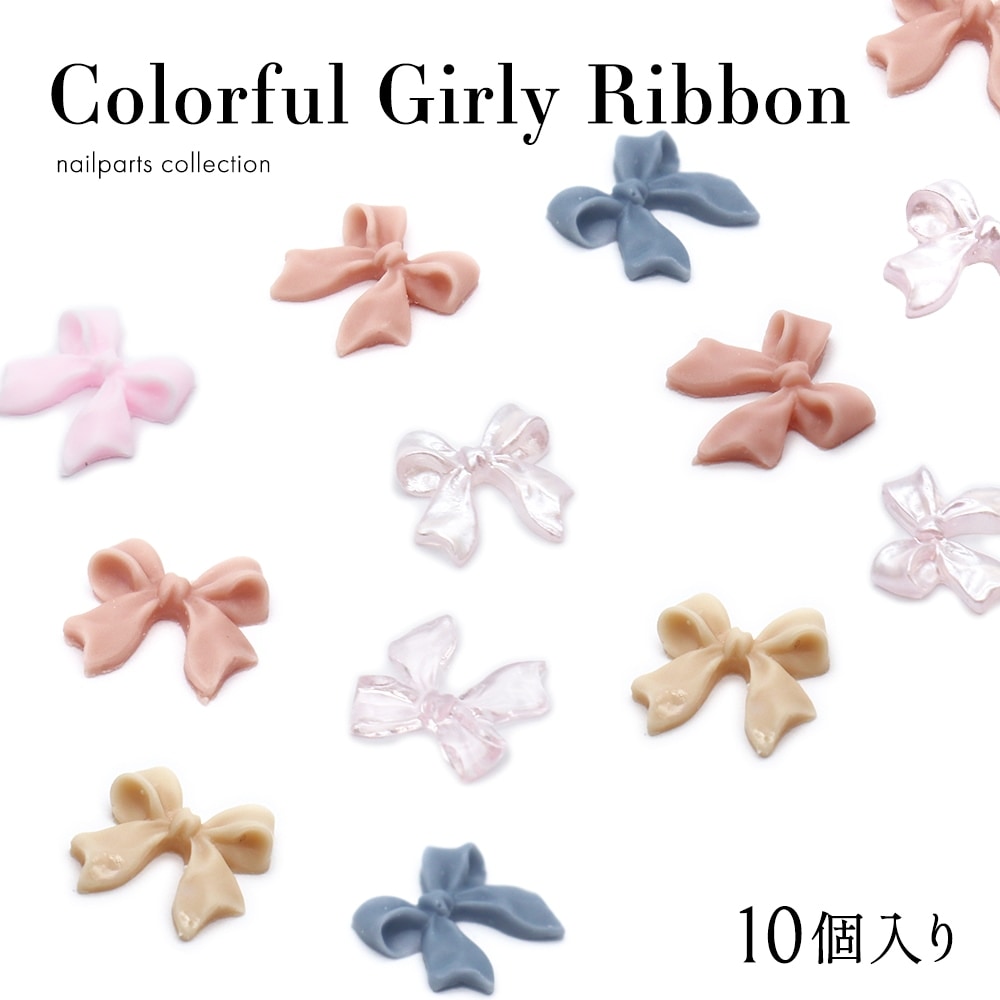 【ネコポス送料無料】ネイルパーツ カラフルガーリーリボンパーツ 全14色 [10個入り]