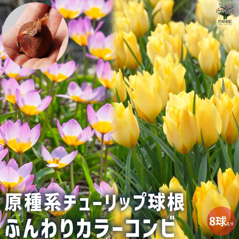 原種系チューリップ ふんわりカラーコンビ2種混合【花球根/お買い得8球セット】