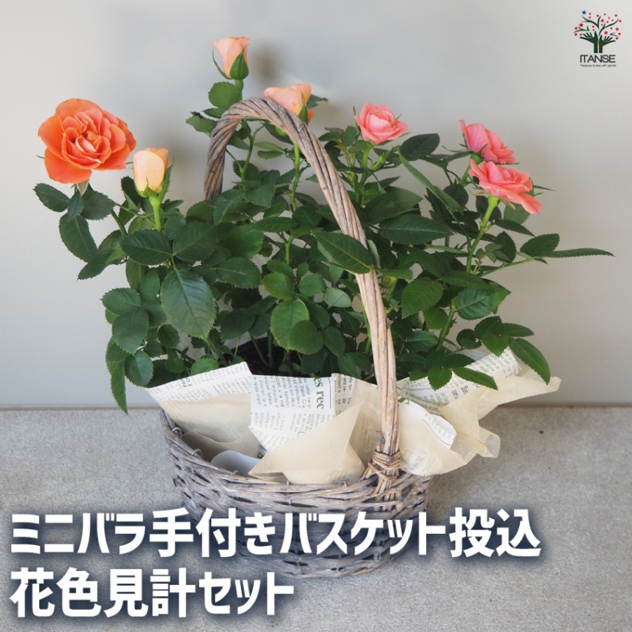 ミニ薔薇 花色見計らいセット【花苗 手付きバスケット投込売り】