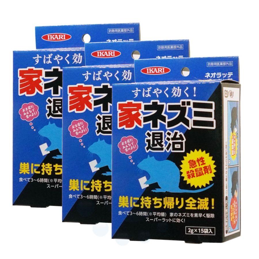 イカリ消毒 ネオラッテクイックリー T2 15袋入×3個 【防除用医薬部外品】 急性殺鼠剤 リン化亜鉛