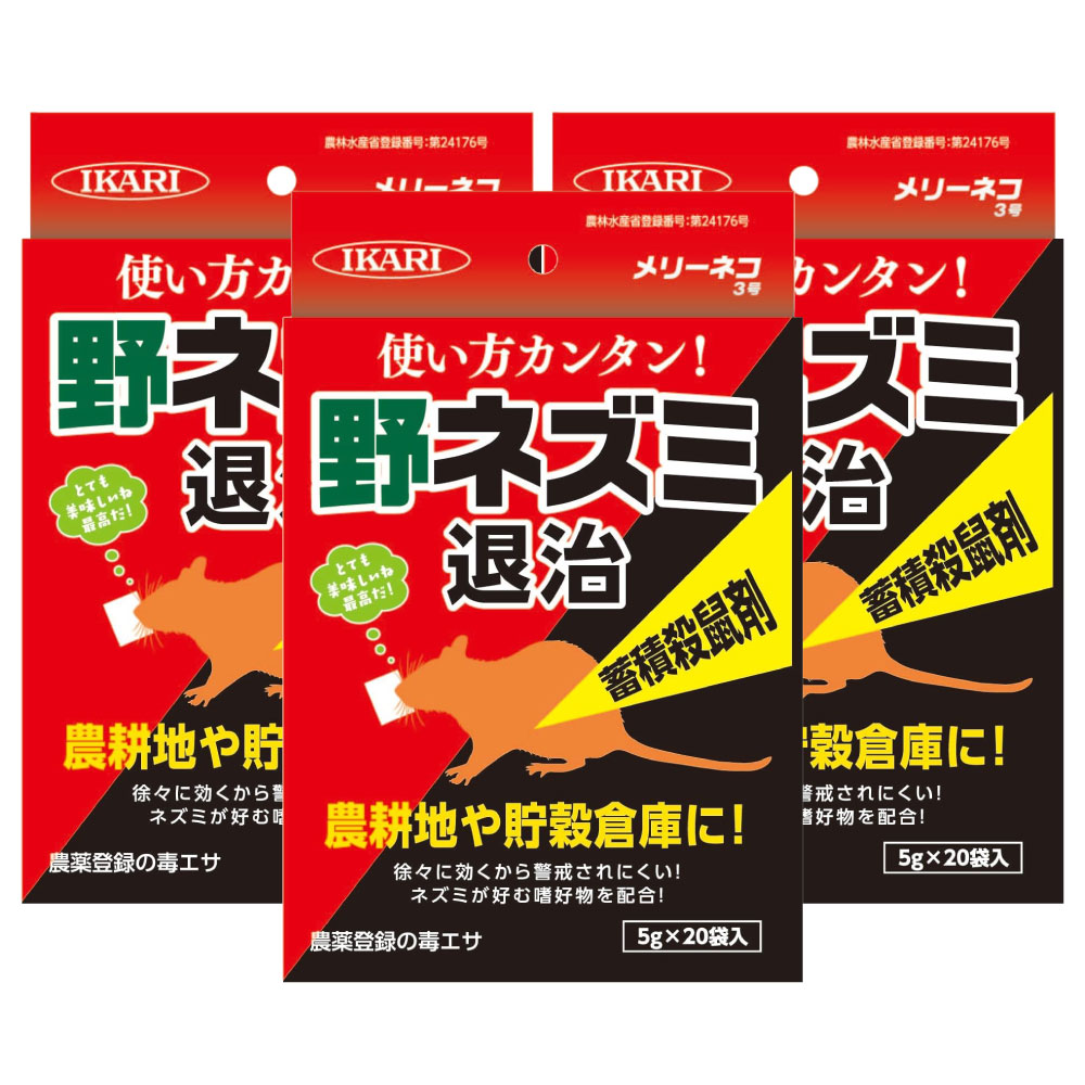 イカリ消毒 メリーネコ3号 (5g×20袋入)×3個 農薬 農耕地 貯穀倉庫 殺鼠剤 野ネズミ 対策 ねずみ 鼠 駆除 ワルファリ...