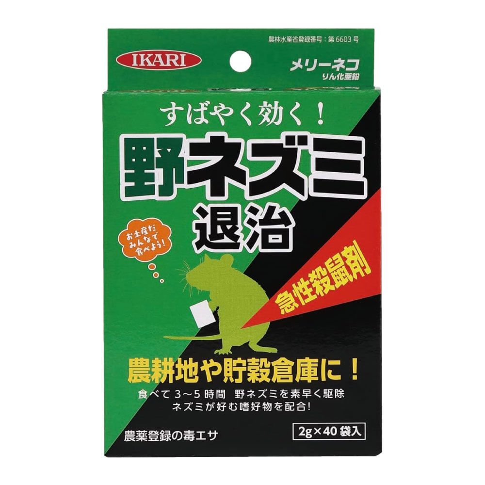イカリ消毒 メリーネコりん化亜鉛 2g×40袋入 農薬 農地 山林 貯穀倉庫 殺鼠剤 野ネズミ 対策 ねずみ 鼠 駆除 リン化亜鉛