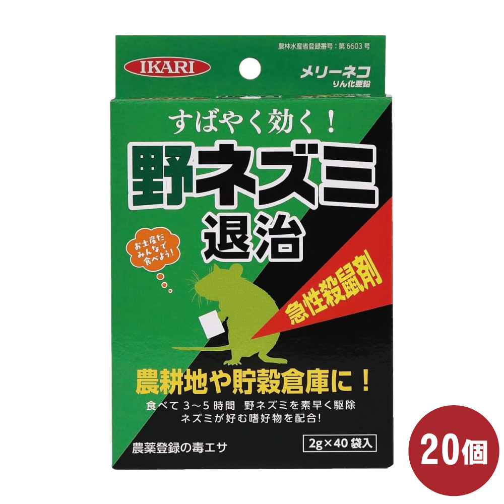 イカリ消毒 メリーネコりん化亜鉛 (2g×40袋入)×20個 農薬 農地 山林 貯穀倉庫 殺鼠剤 野ネズミ 対策 ねずみ 鼠 駆除...