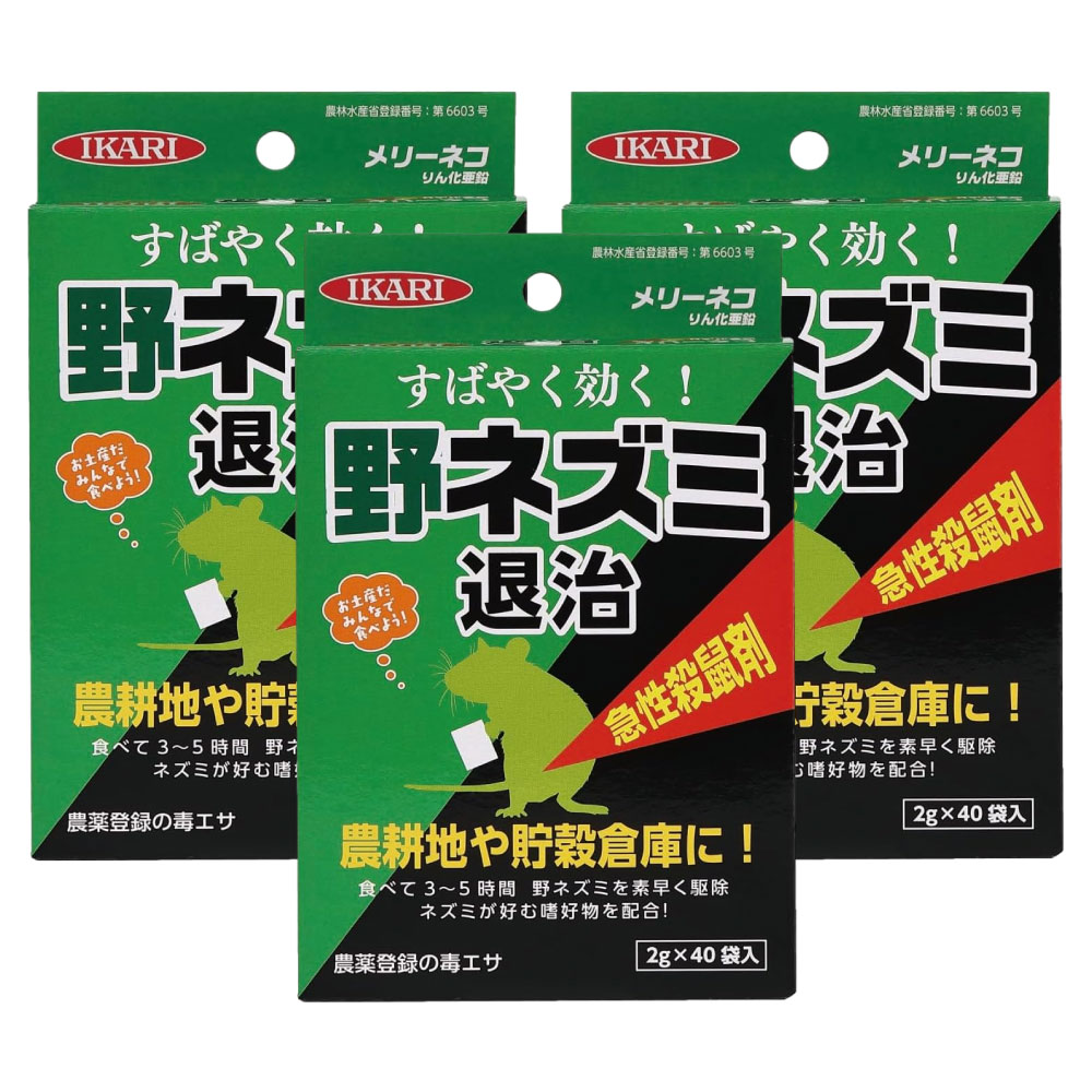 イカリ消毒 メリーネコりん化亜鉛 (2g×40袋入)×3個 農薬 農地 山林 貯穀倉庫 殺鼠剤 野ネズミ 対策 ねずみ 鼠 駆除 ...