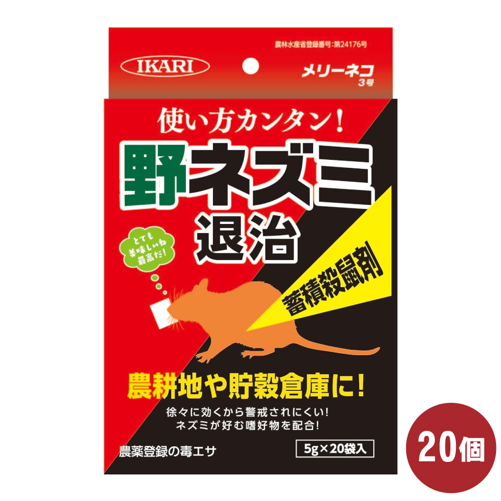 イカリ消毒 メリーネコ3号 (5g×20袋入)×20個 農薬 農耕地 貯穀倉庫 殺鼠剤 野ネズミ 対策 ねずみ 鼠 駆除 ワルファ...