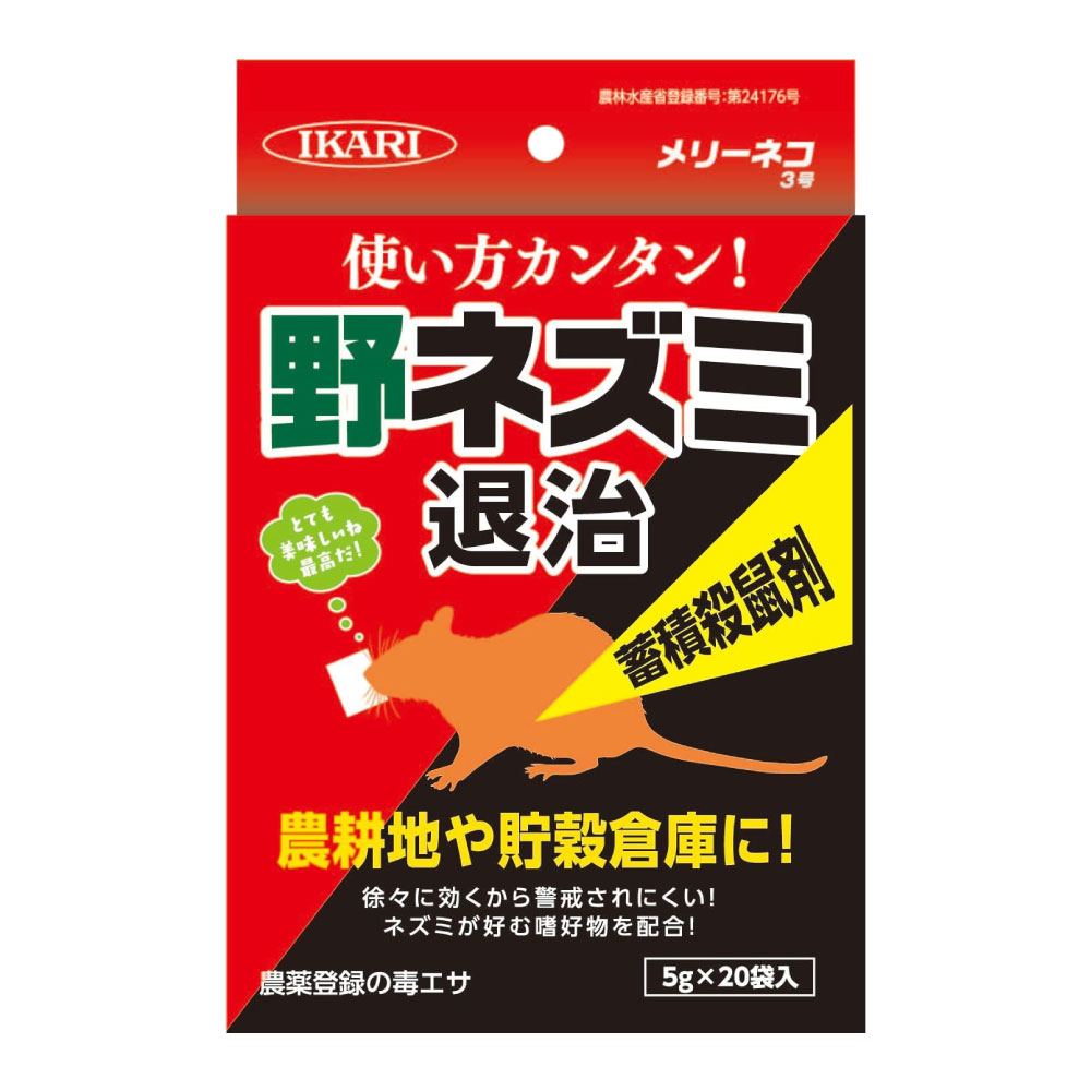 イカリ消毒 メリーネコ3号 5g×20袋入 農薬 農耕地 貯穀倉庫 殺鼠剤 野ネズミ 対策 ねずみ 鼠 駆除 ワルファリン