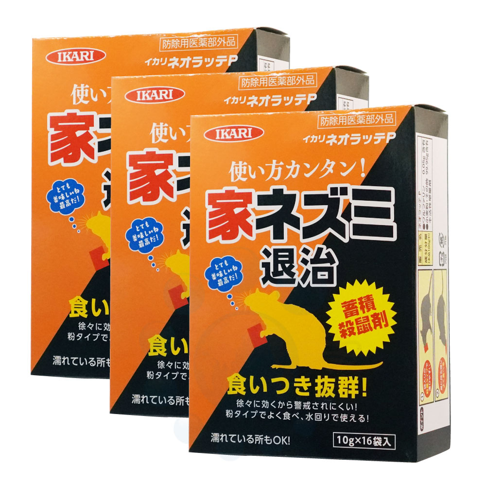 イカリ消毒 イカリネオラッテP 16袋入×3個 【防除用医薬部外品】 蓄積殺鼠剤 ワルファリン