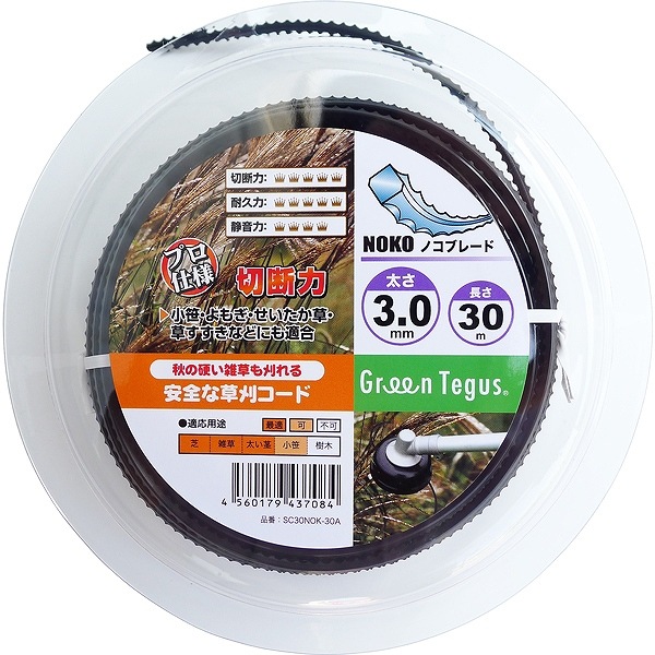 ノコブレード ナイロンコード 3.0mm×30m 1巻(1mあたり90円) ノコギリ形 刈払機・草刈機ナイロンカッター用