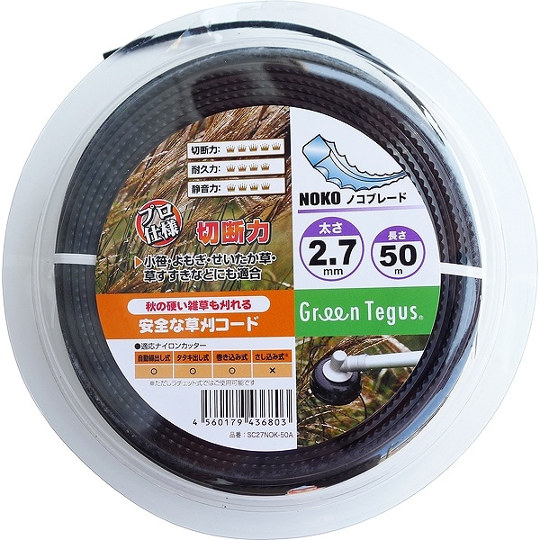 ノコブレード ナイロンコード 2.7mm×50m 2巻(1mあたり52円) ノコギリ形 刈払機・草刈機ナイロンカッター用