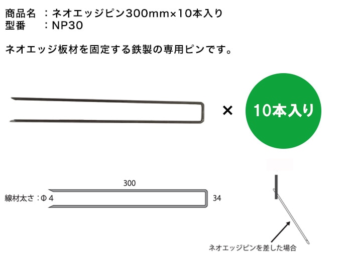 ネオエッジピン300mm(10本入り)・型番:NP30/素材:鉄製【ネオネッジ板材用オプション 板材をピンで地盤に固定します 高儀...