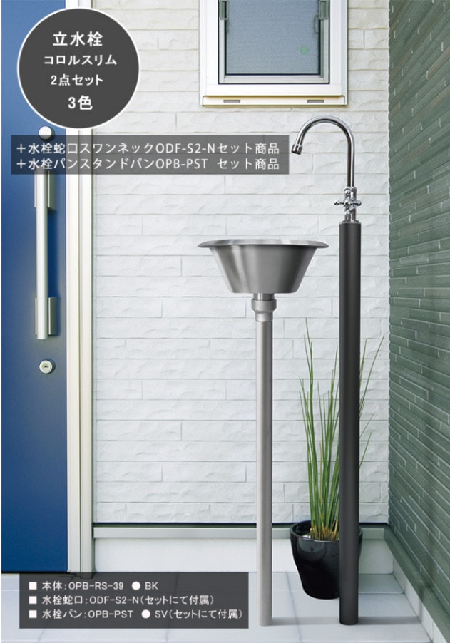 立水栓ユニットセット商品「コロルスリム3点セット」 規格名称:本体OPB-RS-39+スワンネック水栓蛇口ODF-S2-N+スタン...