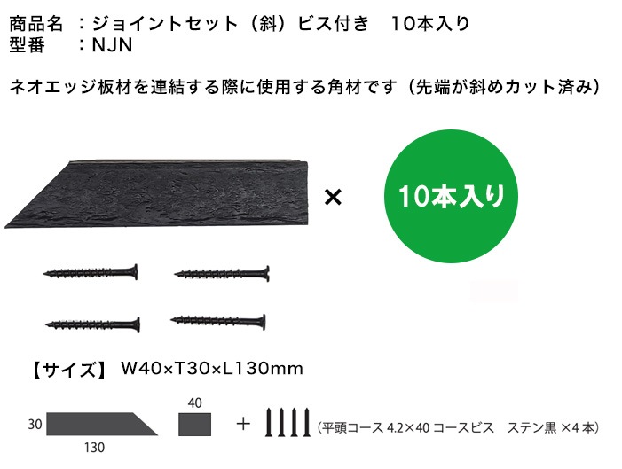 ジョイントセット(斜)ビス付き(10セット入り)・型番:NJNx10set/サイズ:W40×T30×L130(先端斜めカット済み)...