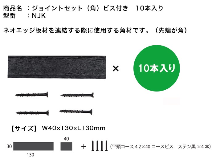 ジョイントセット(角)ビス付き(10セット入り)・型番:NJKx10set/サイズ:W40×T30×L130/素材:発泡樹脂【ネオ...