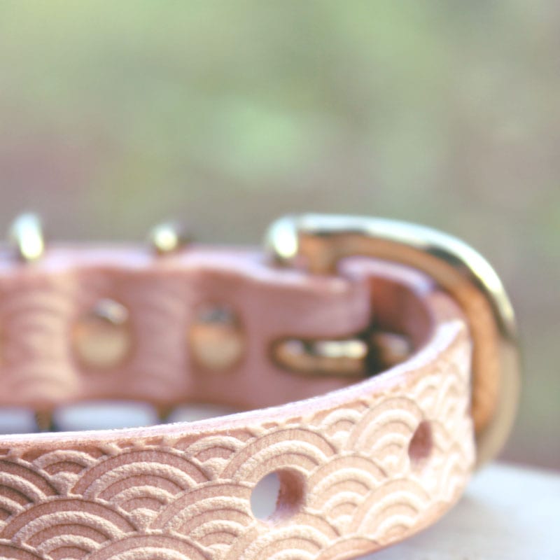 [#A8892]サクラ犬具製作所 本革 青海波型押し模様首輪 日本製