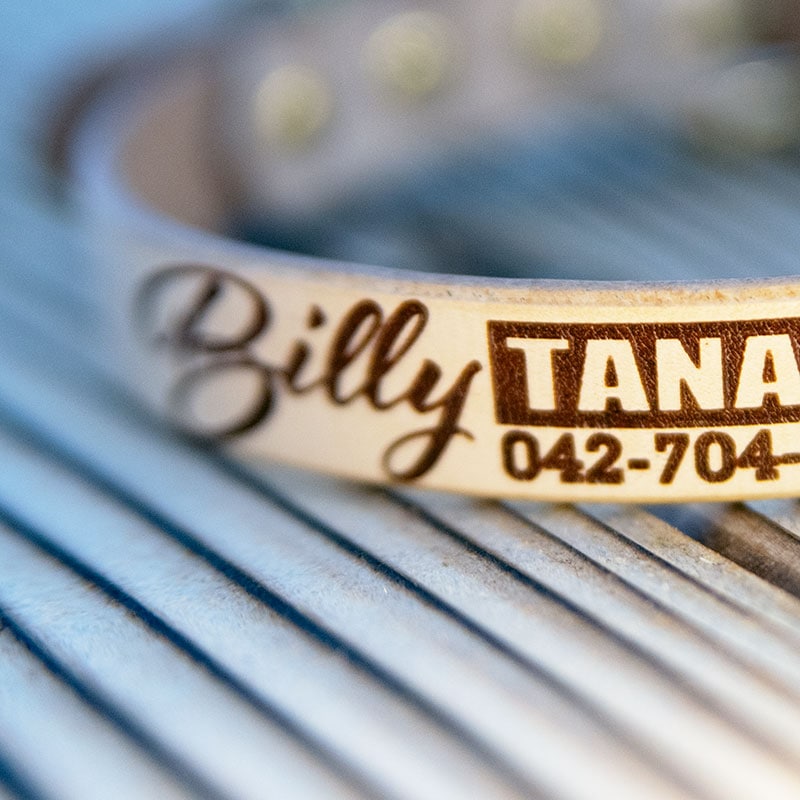 おなまえ首輪 名前電話番号 [筆記体] レーザー彫刻 本ヌメ革/本革 手仕上げ 真鍮金具 首輪(小型犬・中大型犬) A88896...