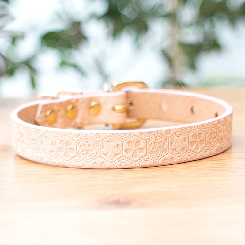 [#A8898]サクラ犬具製作所 本革 サクラ文様 桜亀甲 和柄型押し模様首輪 日本製