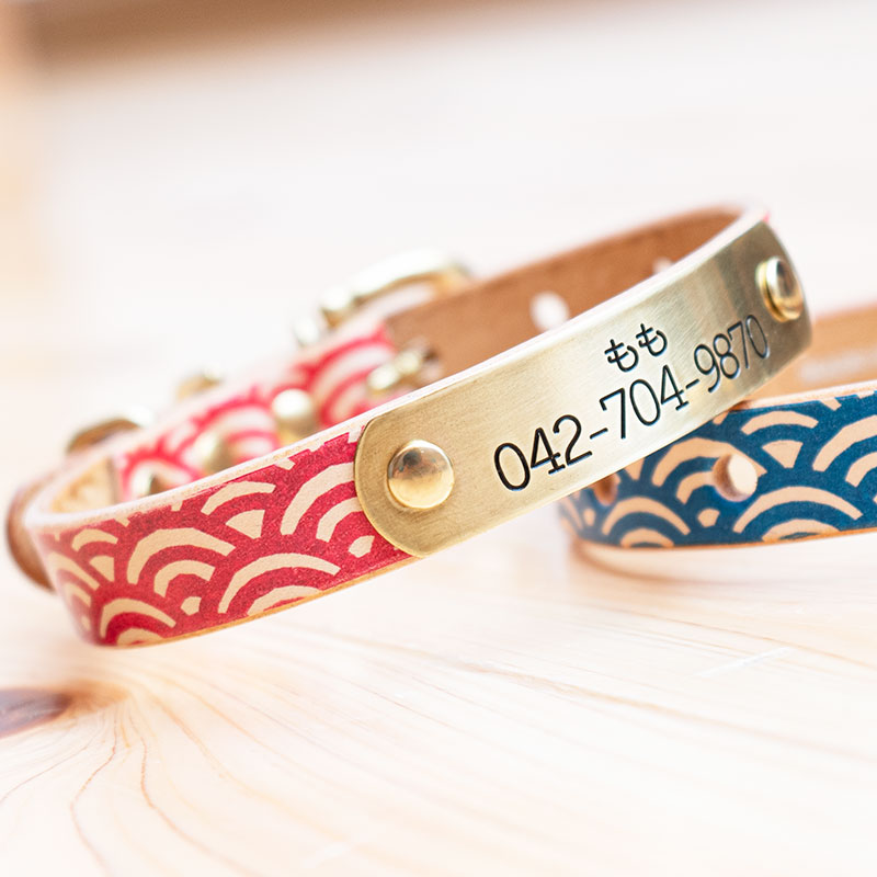 Framer アートなグラフィック本革首輪 真鍮無垢金具 サイズSSS~LL ベルト幅16mm/12mm/24mm 和柄もみじ柄 ...
