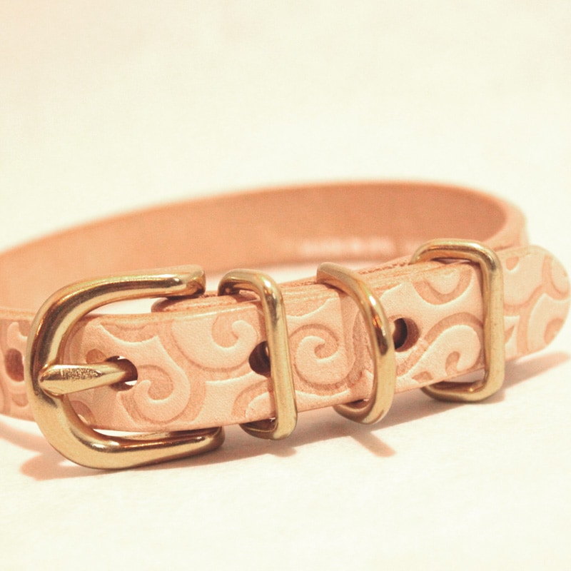 [#A8891]サクラ犬具製作所 本革 唐草型押し模様首輪 からくさ 日本製
