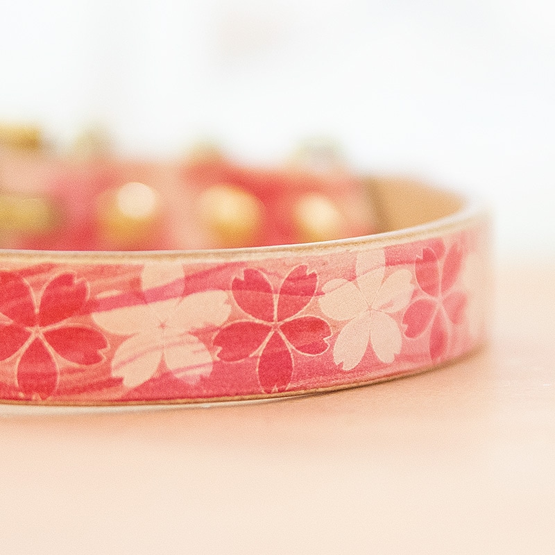 Framer アートなグラフィック本革首輪 春風 サクラ 真鍮無垢金具 サイズSS~L ベルト幅16mm #23482