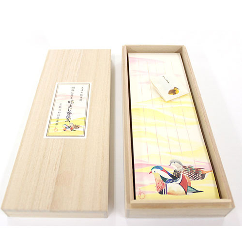 沓掛ろっか 桐箱花鳥箋 睦まじ鴛鴦 (RKI-012) 包み香入りの美濃和紙一筆箋 和詩倶楽部 気軽なひとことを添えるミニ便箋 文...